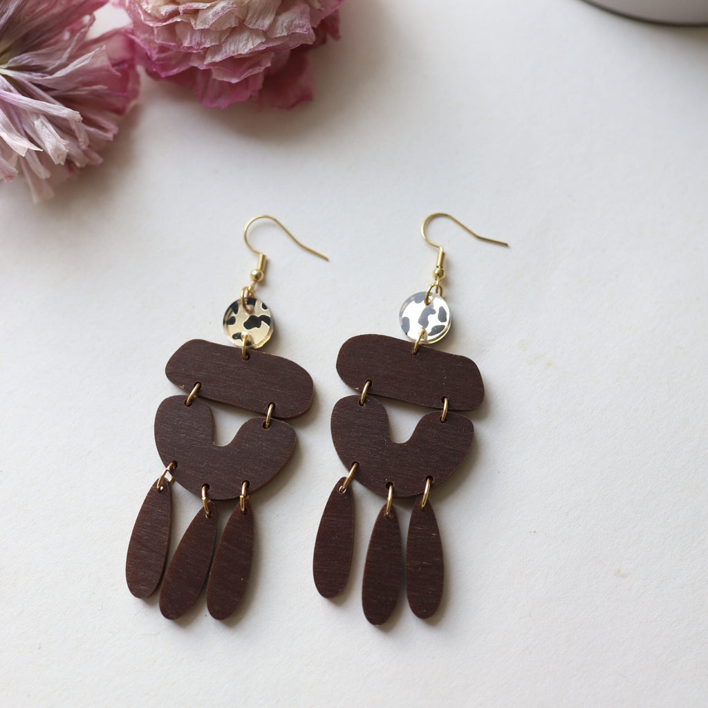 Korupajan palat uudistuvat, vanhoista paloista tehty poistokorvakoruja. Vaneri kotimaista koivuvaneria, koruosat kirurginterästä.