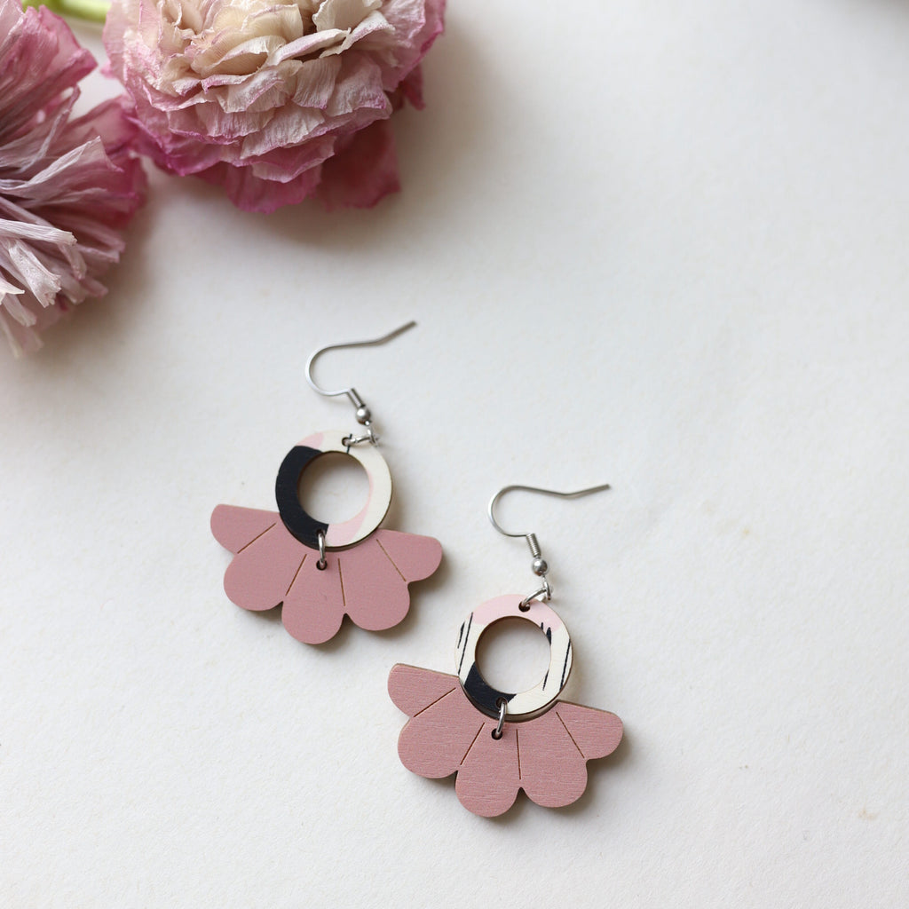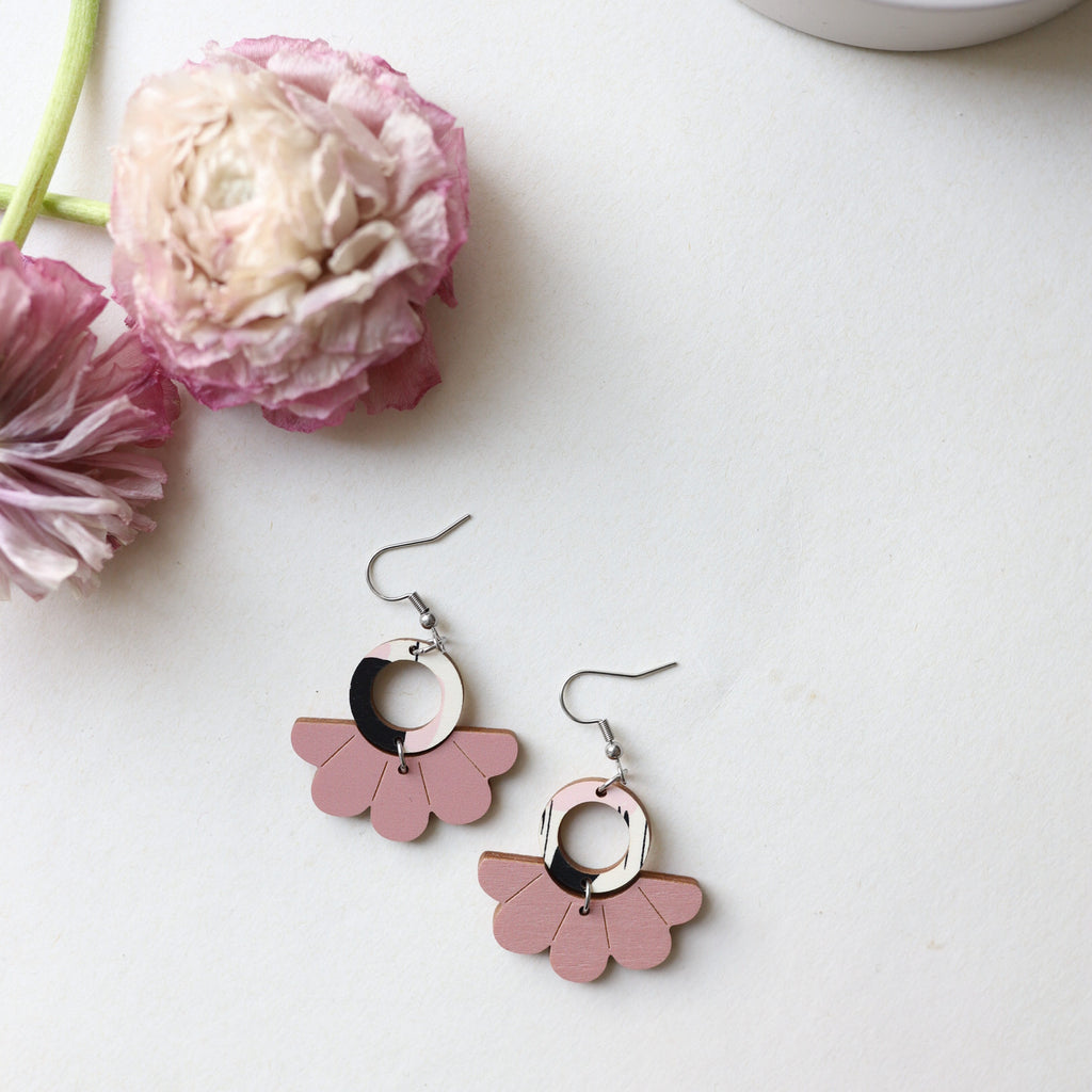 Korupajan palat uudistuvat, vanhoista paloista tehty poistokorvakoruja. Vaneri kotimaista koivuvaneria, koruosat kirurginterästä.