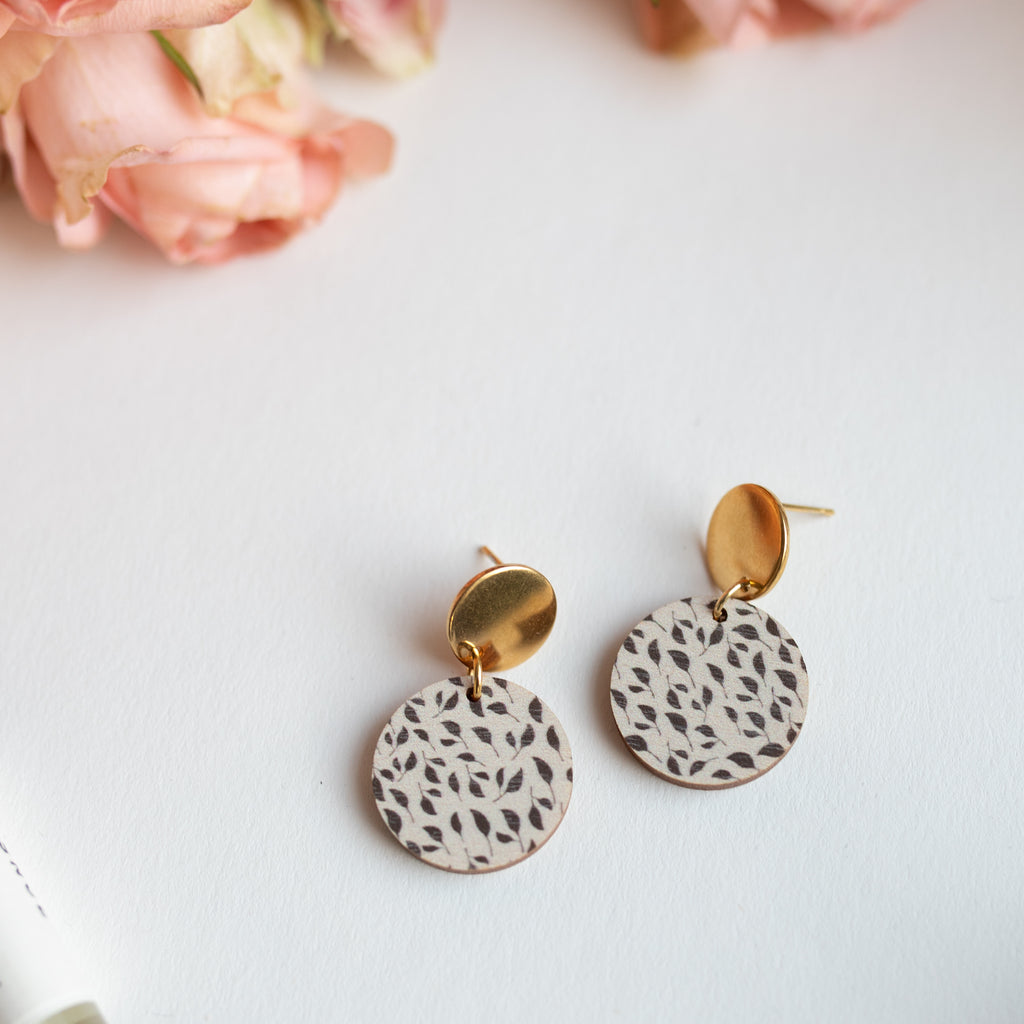 Kauniit Vila korvakorut, jotka ihastuttavat tyylillä mutta ei painolla. Kotimaista koivuvaneria johon laser printattu minun piirtämiä lehtiä.