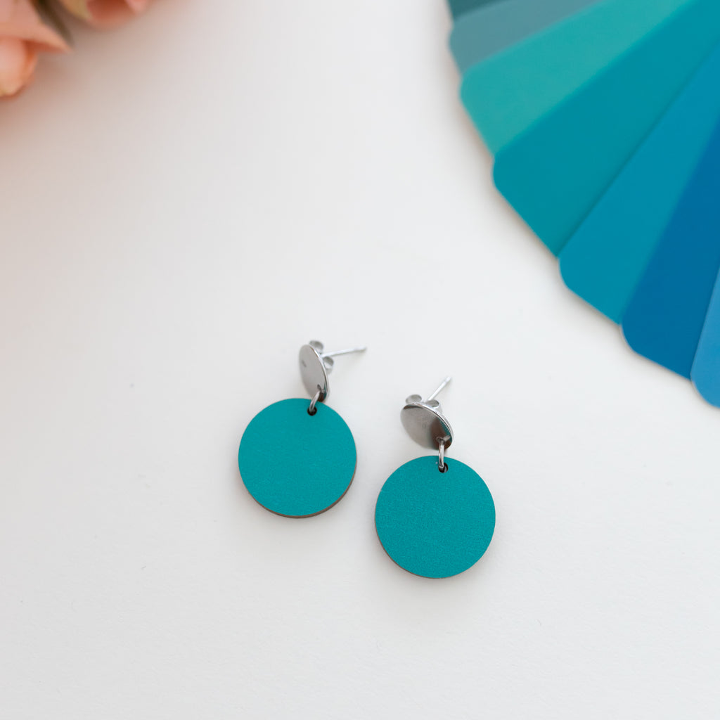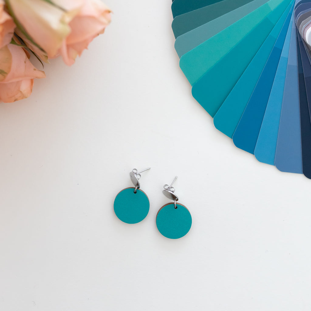 Kesän korvakorut ovat sävyltään kylmiä mutta pehmeitä. Vanerikorvakorut ovat kevyet, jotka tuntuvat huomaamattomilta korvassa, mutta viimeistelevät asun kuin asun. Pelkistetty muoto ja tasapainoiset mittasuhteet tekevät koruista helppokäyttöiset. Tämä sävy sopii ihanasti myös talville.